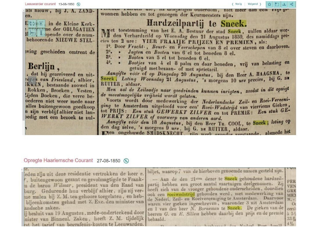 Over het organiseren van Roeiwedstrijden in Sneek wordt al in 1850 gesproken.